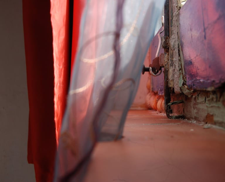 Azul indigo, rojo, blanco y luz. Una imagen que contrasta, que nos da que pensar, que reflexionar acerca del ser huano y de su capacidad de resilencia. Al tiempo resulta ser una imagen pictórica y cálida. Ideal para una sala de estar.