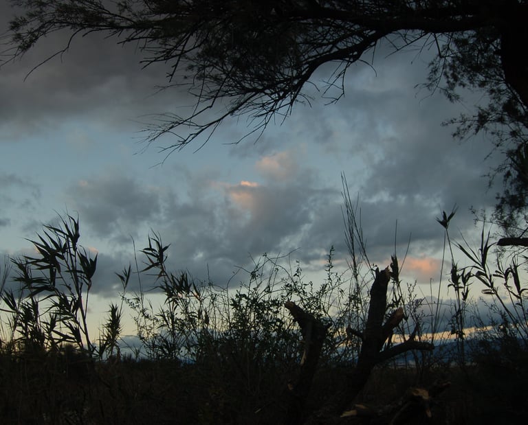 Distancia y una línea de tierra. Perfila sutilmente el horizonte.